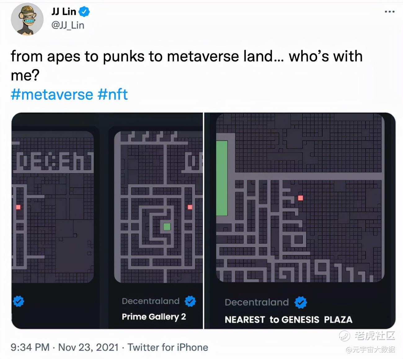 上周,歌手林俊杰也在推特上宣布,自己已在“分布式大陆(Decentraland)”上买了三块虚拟土地,正式涉足元宇宙房产界。据外媒估算,林俊杰购买这三块地花了大约12.3万美元。