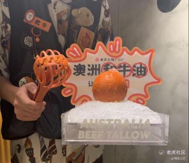 从服务上看,怂确有别出心裁之处。每个锅底的牛油都在消费者面前下锅,服务员也会亲自演示主打产品鲜切黄牛肉的“挂盘不掉”,证明食材的新鲜度。在每晚18:30和20:00的时段,服务员还会穿上特色服装连跳三首串烧,极大提高了品牌在社交媒体的传播度。从串烧的时间看,约晚上六点半一次,八点一次,也正好对应了一顿火锅两个小时左右的就餐时间,串烧不仅能调动门店气氛,而且能适时提高就餐人员的翻台率。