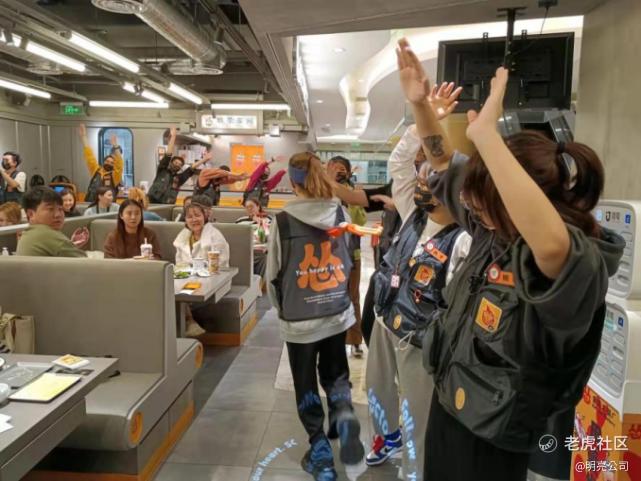 在服务员的选择上,服务员整体看起来都比较年轻,与品牌定位的客群年纪相似或更小,不少服务员有纹身,有些服务员会一直在店里蹦蹦跳跳,整体氛围比较轻松。门店的音乐风格也更类似于“夜店”风,是更适合朋友聚会的一种场景。