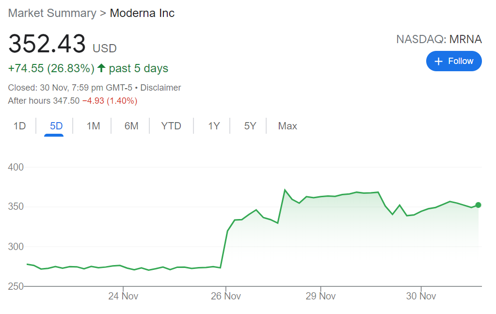 - Covid vaccine makers' stocks soar on Omicron variant concerns last week.