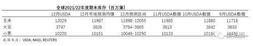 与玉米一样,美国农业部在11月和12月的报告中没有改变对2021/22年度大豆供应和使用量的预期。期末库存持稳,为3.4亿蒲式耳。分析师认为,这一数字还将上涨1,200万蒲式耳。