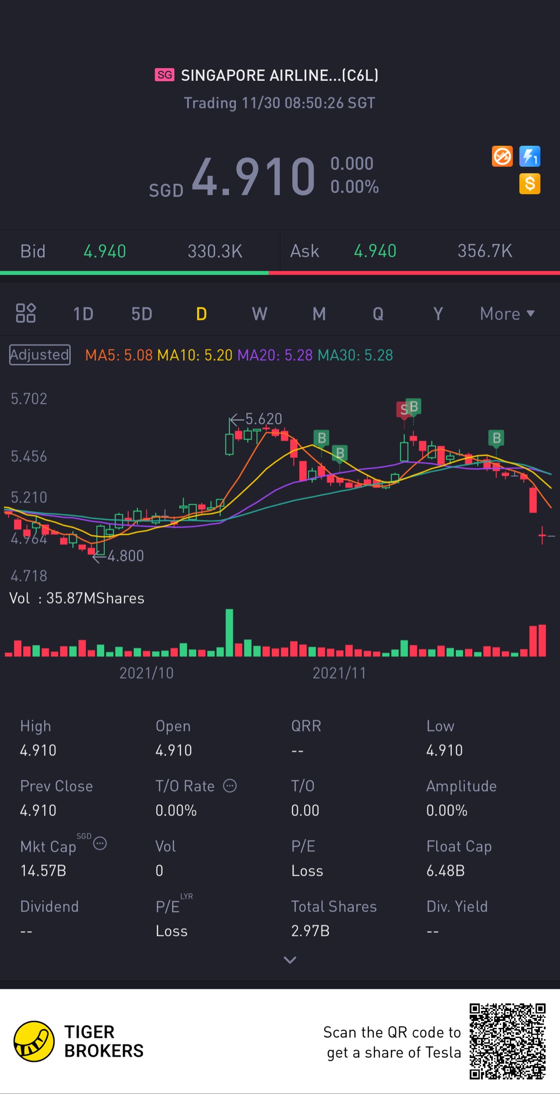 $SINGAPORE AIRLINES LTD(C6L.SI)$