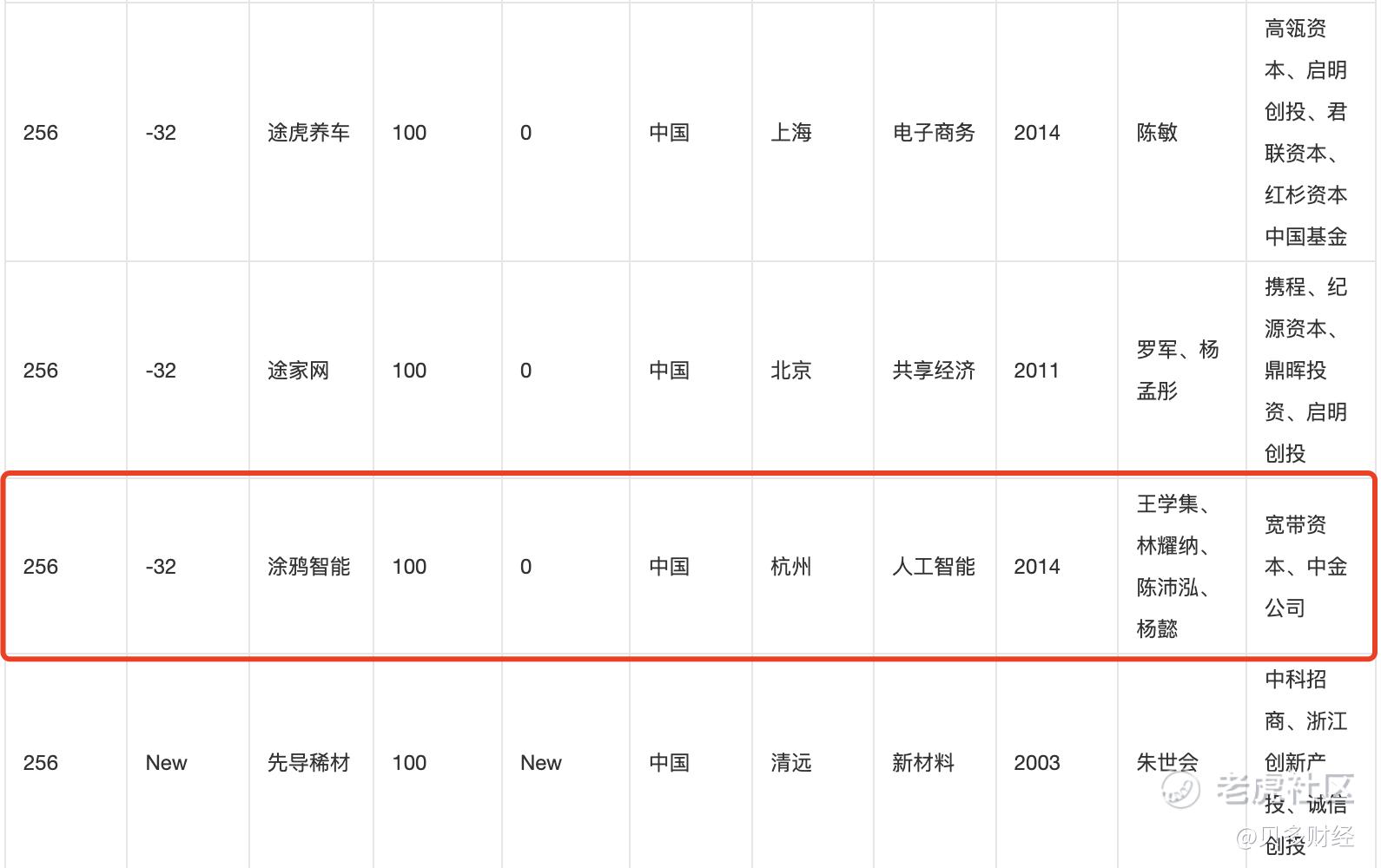 另据贝多财经了解,胡润研究院、苏州高新区于2020年8月联合发布的《苏州高新区·2020胡润全球独角兽榜》显示,涂鸦智能排名第256位,估值为100亿元(估算截止日期为2020年3月31日)。