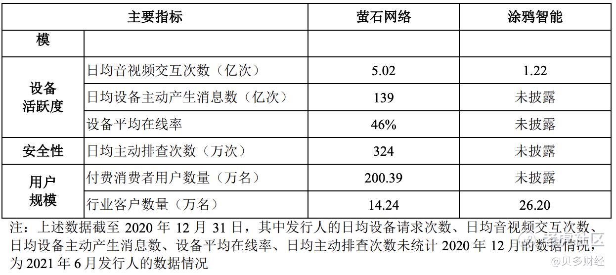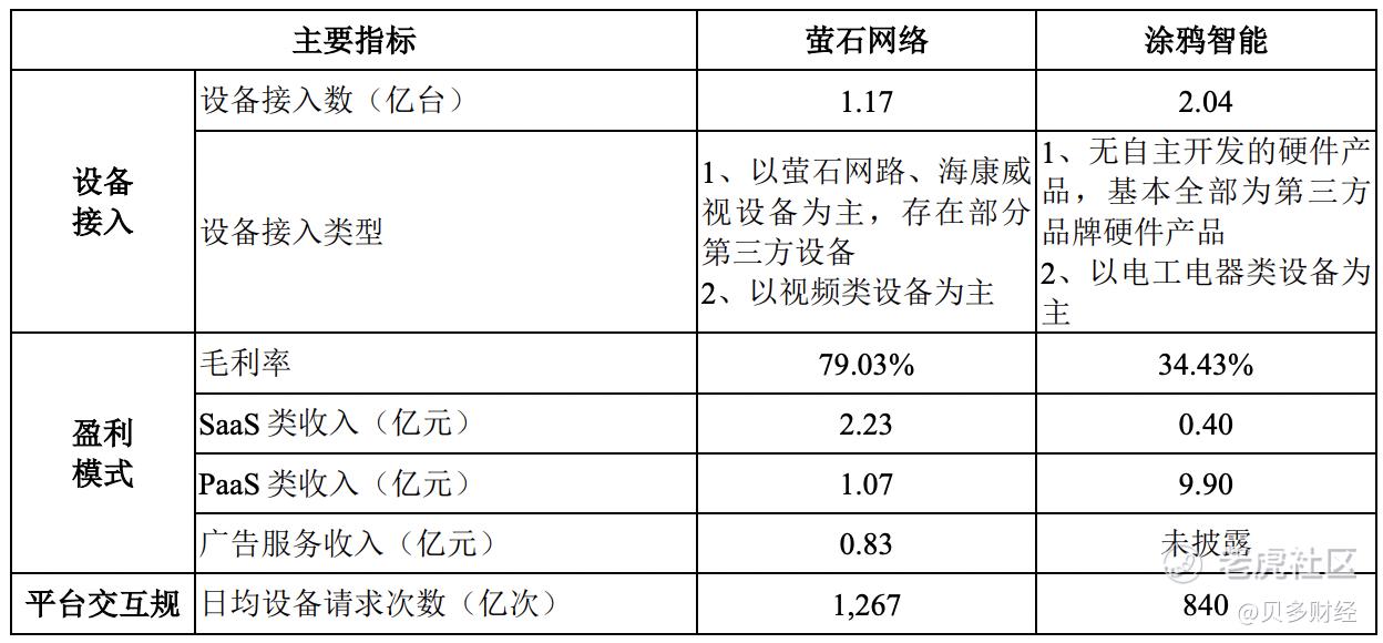 值得一提的是,正在冲刺上交所科创板上市的杭州萤石网络股份有限公司(下称“萤石网络”)还在其招股书中特别提到了涂鸦智能等,称与涂鸦智能、小米IoT平台等其他生活领域的物联网云平台相比,自身的设备接入数并无明显的优势。