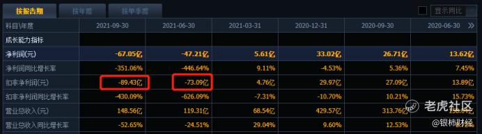 据同花顺数据显示,蓝光发展(600466.SH)从2015年至2020年期间,一直维持着盈利状态。令人奇怪的是,2021年一季报,扣非净利润仍有4.76亿,而到了2021年中报的时候,业绩突然变脸,扣非亏损73个亿,意味着在2021年第二季度,蓝光发展(600466.SH)亏掉了77亿之多。