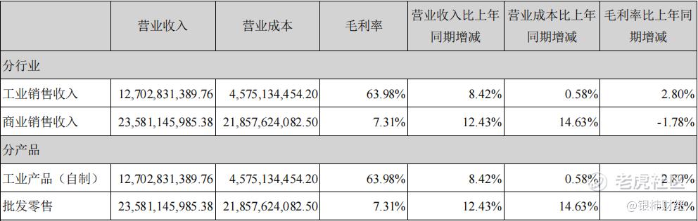 分业务看,2021年度,云南白药以药品流通业务为主的商业销售业务营收同比增加12.43%,毛利率为7.31%,同比减少1.78个百分点。工业销售收入同比增加8.42%,毛利率为63.98%,同比增加2.8个百分点。