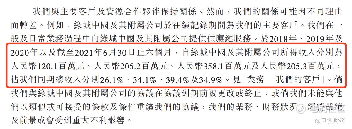 据贝多财经了解,绿城中国也是网筑集团的主要客户。2018年、2019年、2020年和2021年上半年,网筑集团自绿城中国及其附属公司所得收入分别为1.20亿元、2.05亿元、3.58亿元和2.05亿元,占比分别为26.1%、34.1%、39.4%和34.9%。
