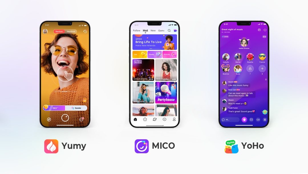 赤子城科技聚焦开放式社交赛道,打造了Yumy、MICO、YoHo等多款音视频社交产品,持续开拓全球市场。自2020年第一季度起,公司社交产品月活已连续9个季度实现增长。