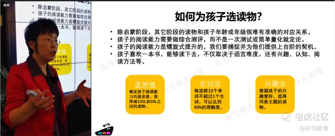 本场讲座,曹文教授从明道理、懂读物、学方法、见效果四个方面剖析了“家庭英语大阅读”在孩子英语教育和全面成长中的重要性,并分享了如何做“智慧父母”帮助孩子跨越单词和语法的鸿沟,燃起孩子的学习兴趣,顺利开启英语阅读。