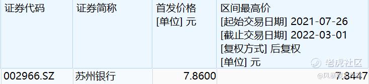 苏州银行上市后只两个涨停便已开板,在上市的第四个交易日便以绿盘收场。按照后复权价格,苏州银行最早于2020年9月底破发。