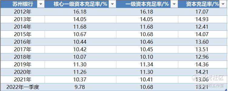 3、2012年-2018年期间,苏州银行的核心一级资本充足率、一级资本充足率整体呈现下降状态。截至2022年一季度末,苏州银行的核心一级资本充足率降到9.78%,创10年新低。