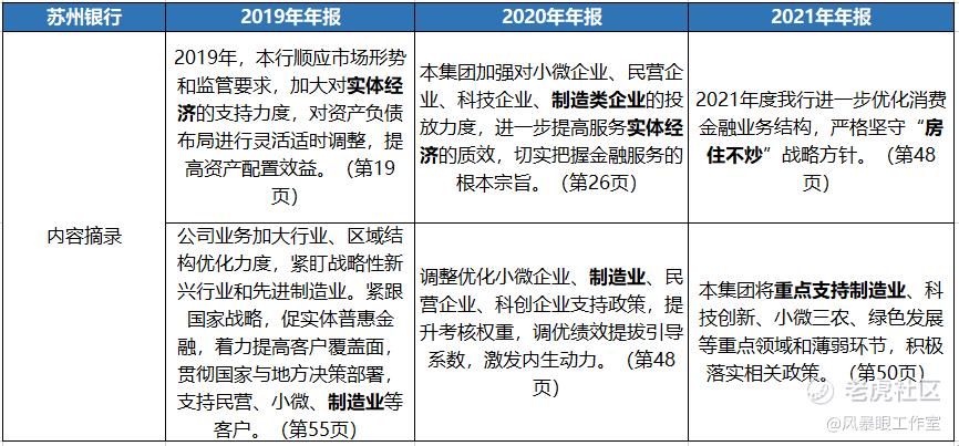 此后,苏州银行也在历年的财报中表示服务实体经济、加大支持制造业、坚守“房住不炒”战略方针。部分内容摘录见下表: