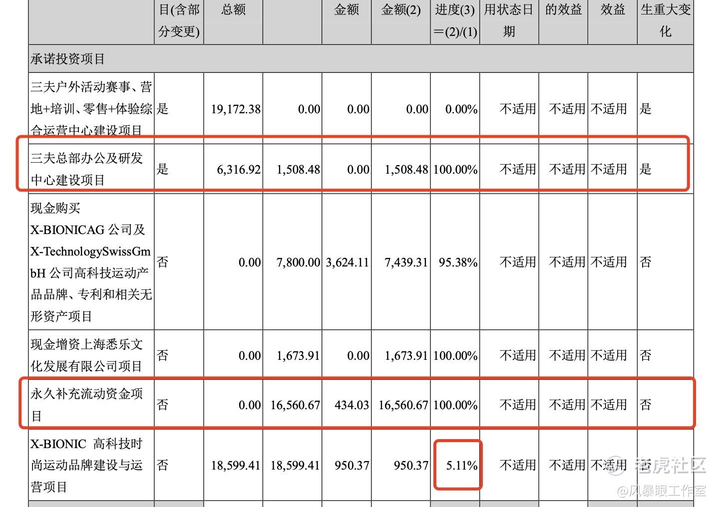 然而,这次募集到的资金,三夫户外只按原计划买了三夫总部办公及研发中心几栋房屋,而原定的运营中心建设项目并未落地,所得募集资金在闲置一段时间买理财之后,在2020年8月变更为“现金购买X-BIONIC AG公司及X-Technology Swiss GmbH公司高科技运动产品品牌、专利和相关无形资产项目”以及“现金增资上海悉乐文化发展有限公司项目”,剩余募集资金永久补充公司流动资金。2021年11月,三夫户外将剩余434.03万元募集资金永久补充流动资金。