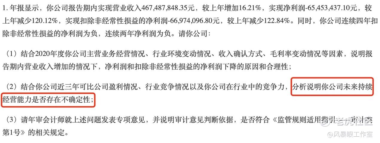 2020年,三夫户外的年报被问询,其中正有一项提到“公司未来持续经营能力是否存在不确定性”,这或可视作是对三夫户外是否会被ST的判断。最终结果来看,三夫户外虽然连年亏损,但仍然可以继续经营下去,等待困境反转的那一天,因此公司并未被ST。