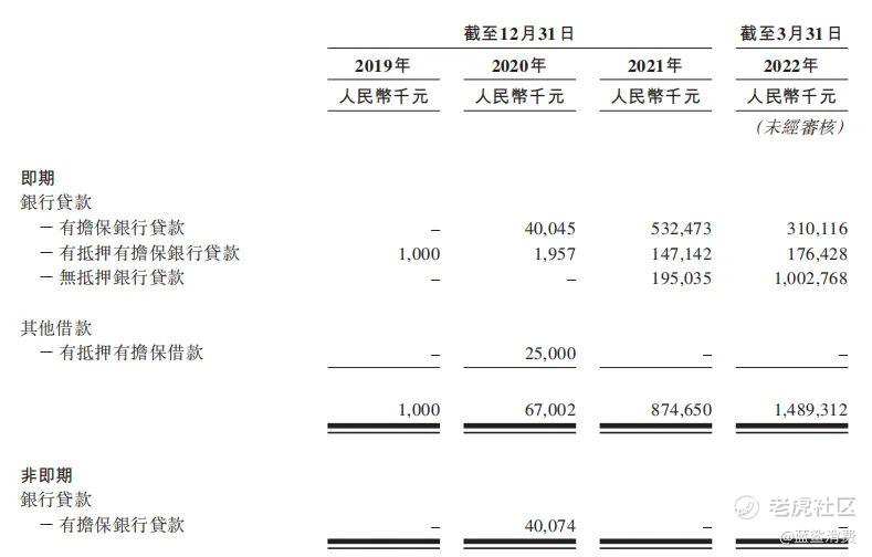 洪九果品2019-2022年(截至3月31日)银行贷款