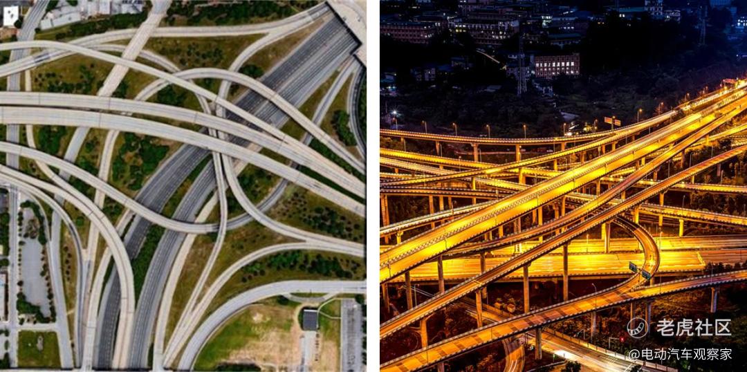 中、美最复杂的立交桥系统:美国亚特兰大(左)与中国重庆