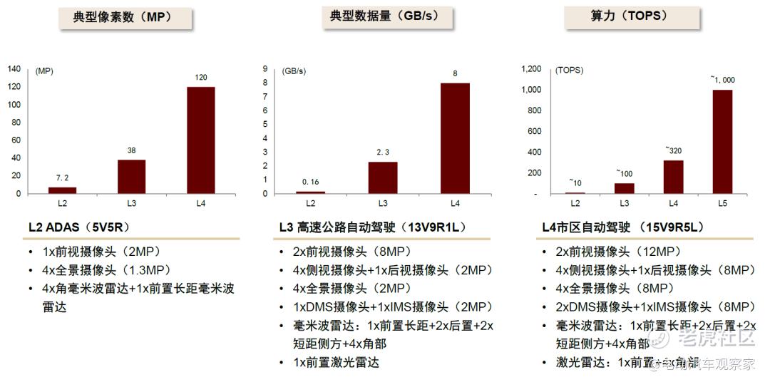自动驾驶各级别对应像素数、数据量以及算力需求(估计值)《中金 | AI十年展望》