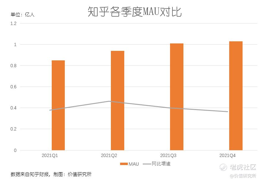 将时间轴拉长也可以发现,过去一年知乎的用户规模始终处于良性增长态势,且用户粘性也得到一定提升。根据各季度财报,去年前三个季度,知乎MAU分别录得8500万、9430万和1.01亿,对应的同比增速则分别为37.7%、46.2%和40.1%,成绩相当稳定。