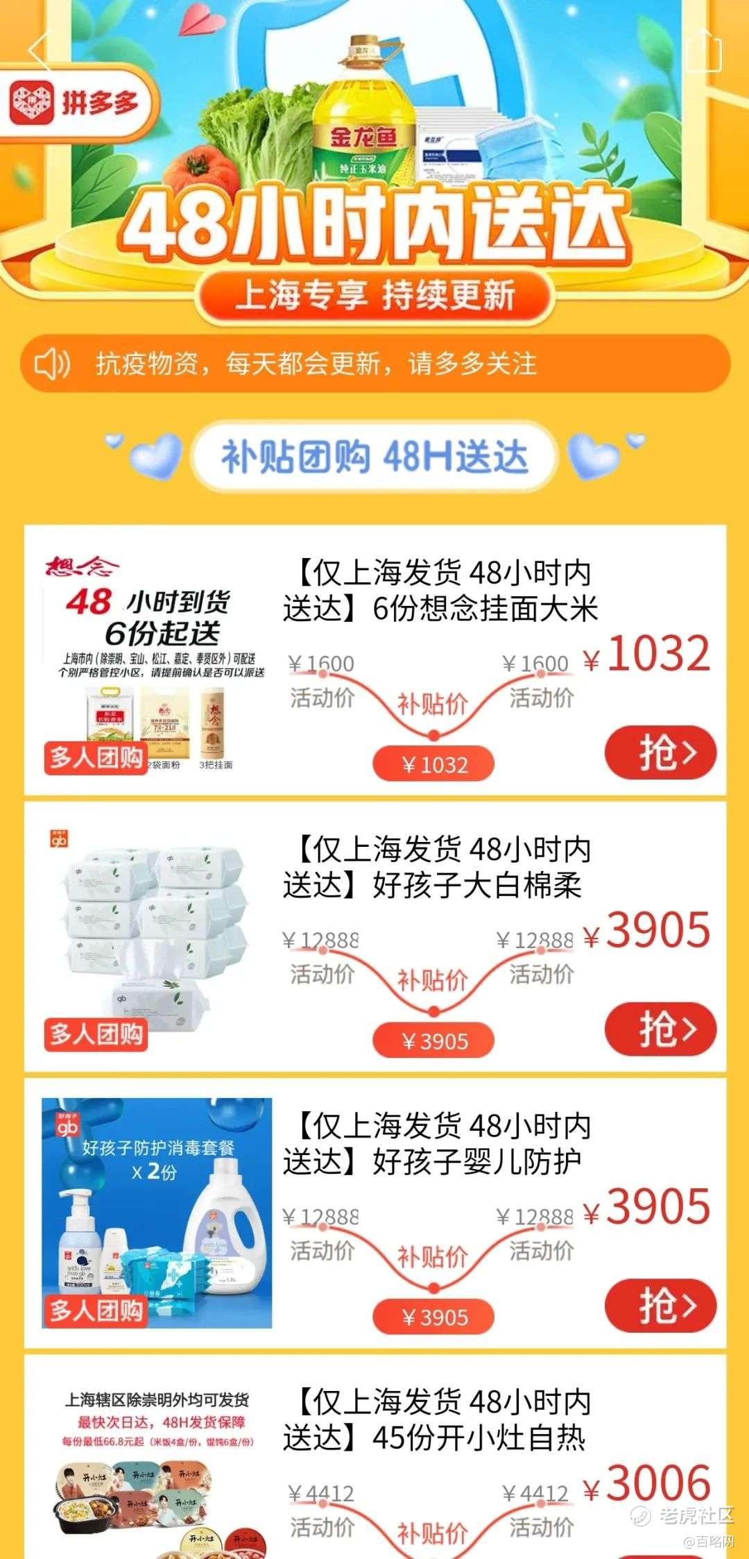 4月7日零点,拼多多正式上线“48小时保供套餐”。拼多多相关负责人介绍,消费者打开拼多多app或小程序,搜索“上海48小时”,即可进入保供套餐专题页面。