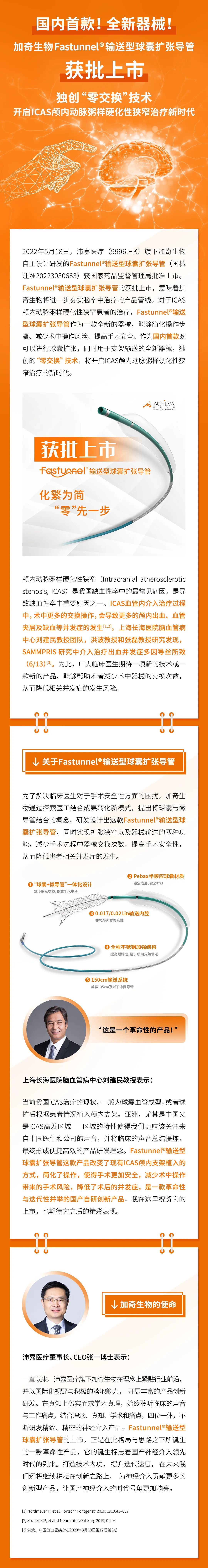 国内首款!沛嘉医疗旗下加奇生物Fastunnel®输送型球囊扩张导管获批上市,开启ICAS颅内动脉粥样硬化性狭窄治疗新时代