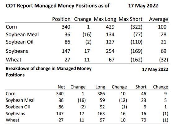管制资金减少了豆粕头寸,同时增加大豆和小麦多头头寸。头寸没有重大变化,因为基本面基本保持不变。
