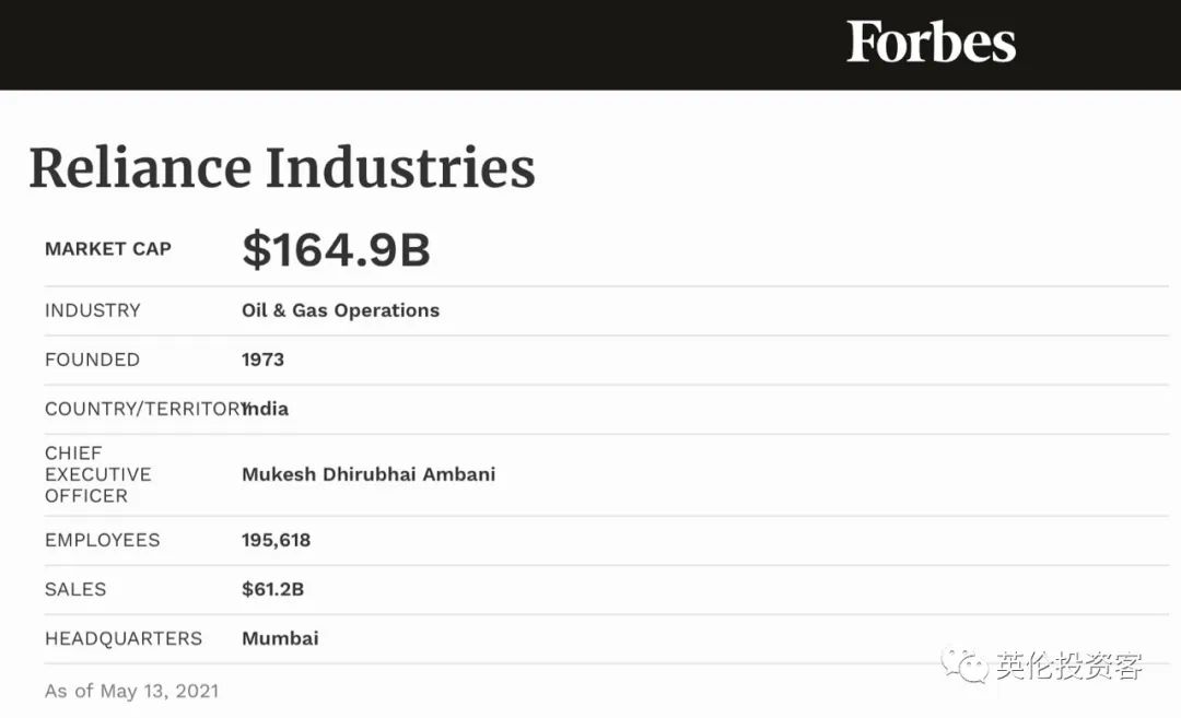 在2021年福布斯全球企业2000强中,信实排名第55。