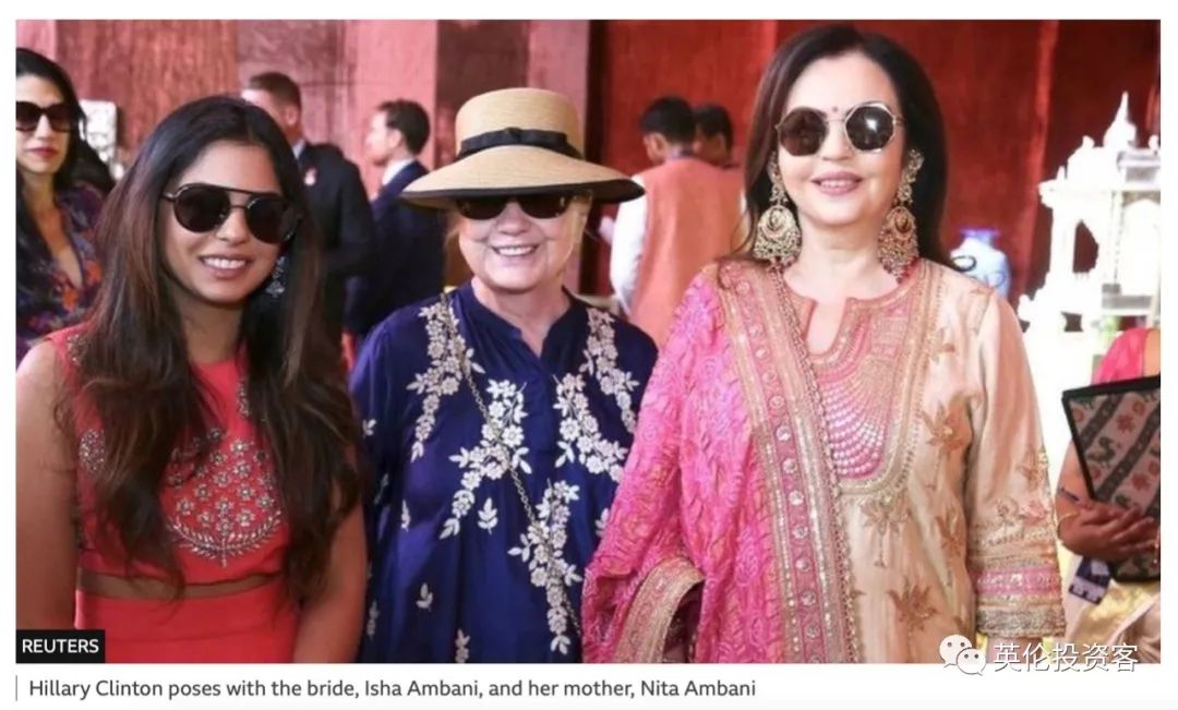 安巴尼的女儿在2018年结婚时,婚礼的花费高达1亿美元,请来了歌手碧昂丝演出助兴。