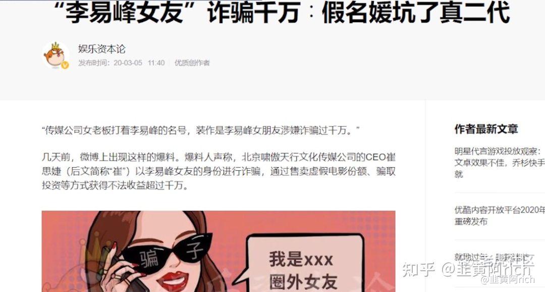 娱乐资本论曾报道过一期,冒充李易峰女朋友,进行影视投资诈骗的案例。