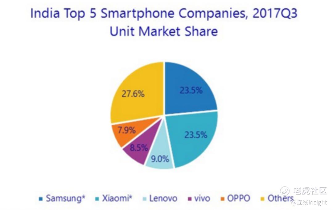 2017年第三季度印度智能手机的市场份额,图源IDC