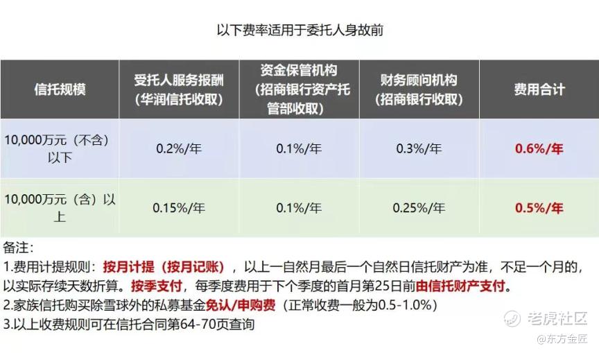 综上,建议您直接到信托公司做家族信托业务,同样也可以配置招行产品,比如直接到华润信托做,不通过招商银行,可以大大降低费率成本。(无需支付0.3%财务顾问费,无需多支付0.09%托管费,可以将总成本降到0.3%左右)