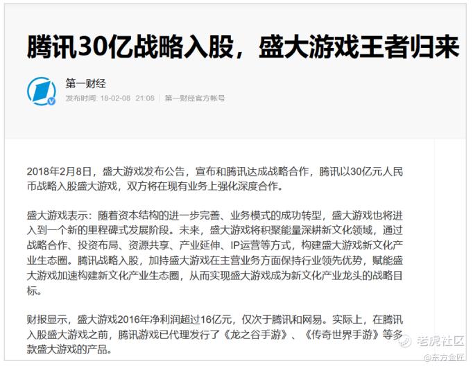 举例:腾讯是盛大游戏的政略投资者