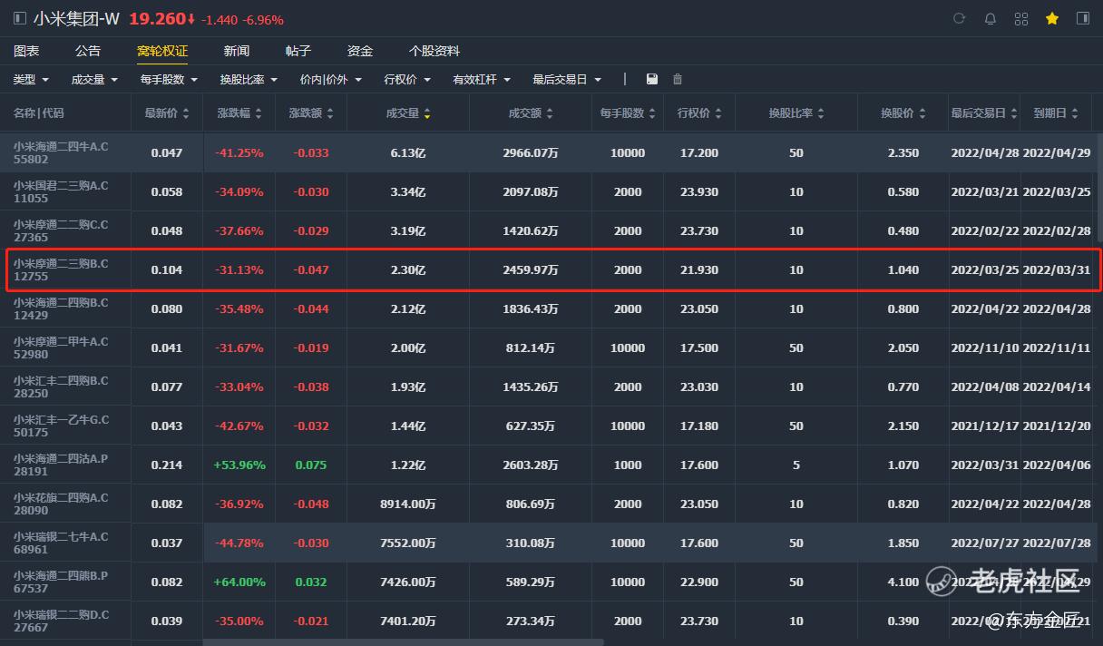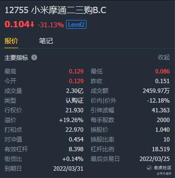 打和点:小米股票涨到22.97,这个窝轮实现盈亏平衡0.104*10+21.93=22.97