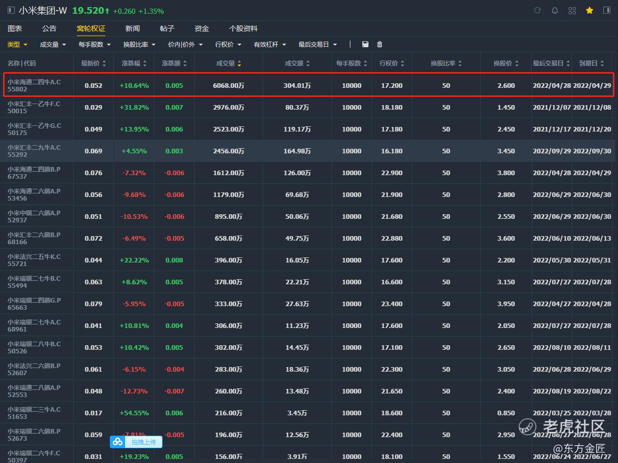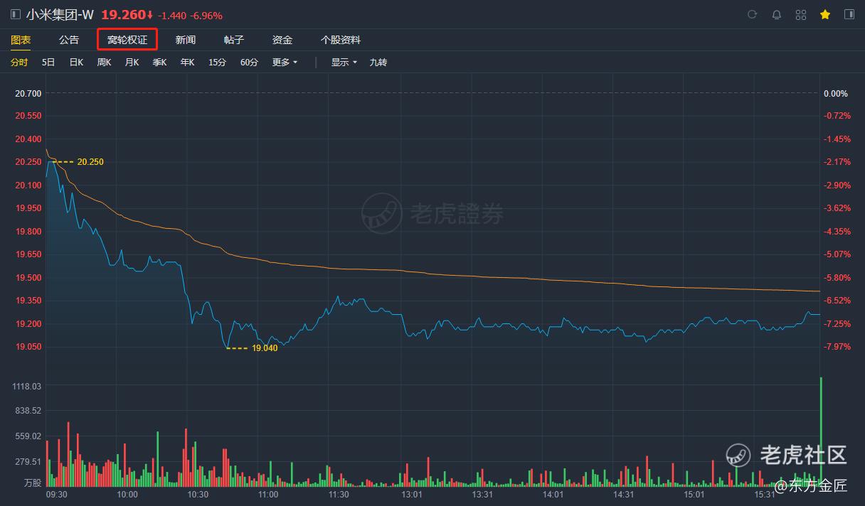 杠杆比例:花1块钱买窝轮,相当于花18.519买小米股票