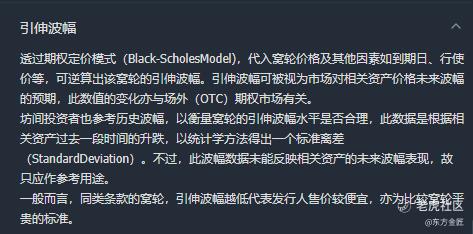 隐含波动率:反映市场预期的未来股价波动情况,越高,说明预期股价波动越剧烈;