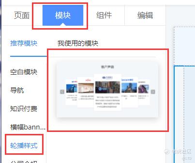 2)找到模块 - 轮播样式,吧模块拖入编辑器内