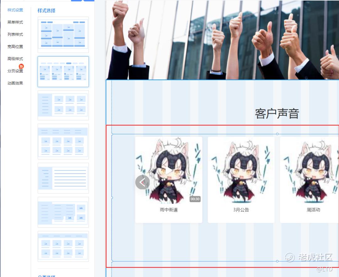 网站编辑器新增轮播样式模块,建站者可直接使用该轮播模块来实现功能美化页面