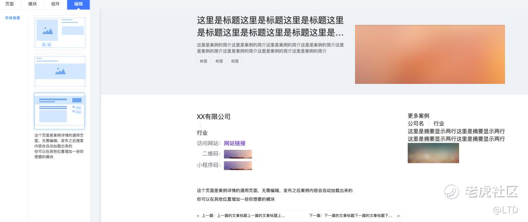 2)修改案例详情页模板样式(路径:官微中心 - 建站 - 网站编辑器)