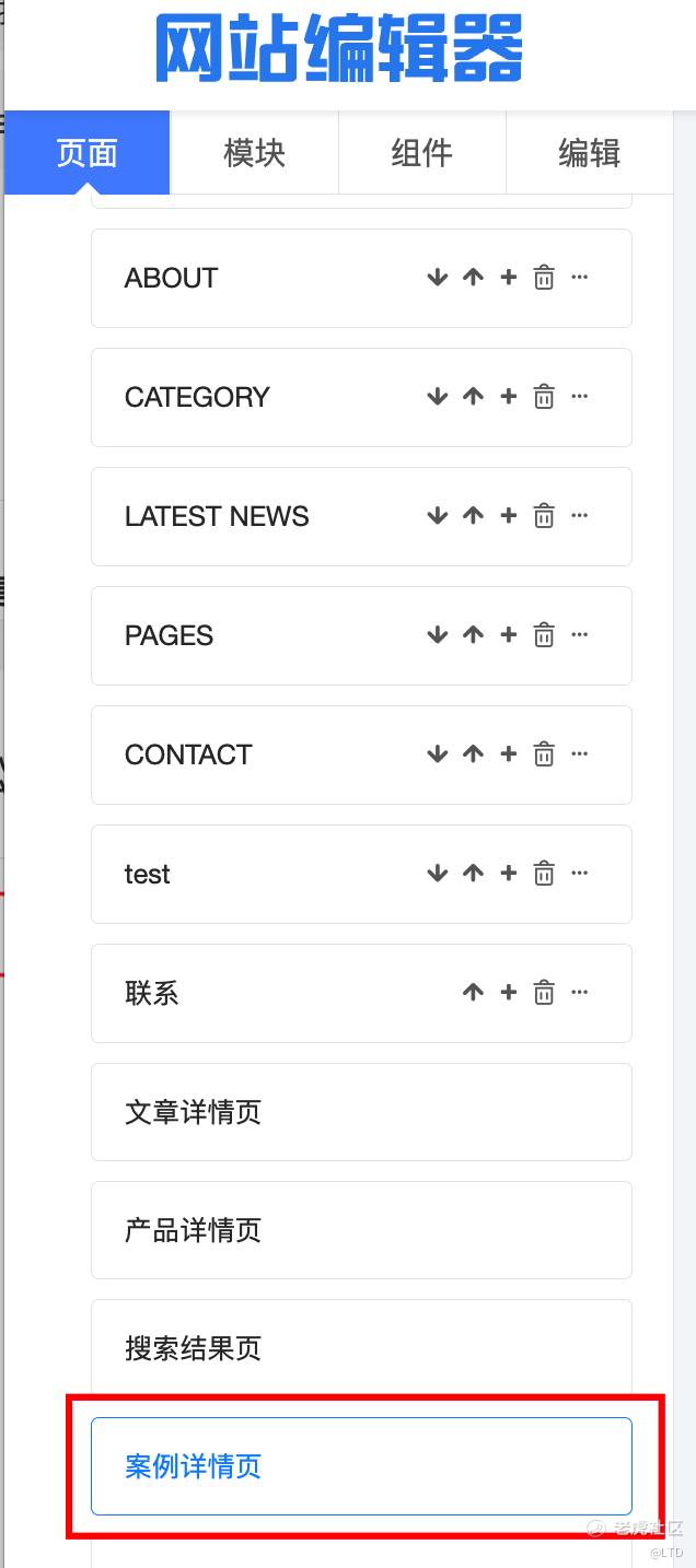 a.在网站编辑器内点击“案例详情页”,然后在编辑内进行案例模板的选择更改