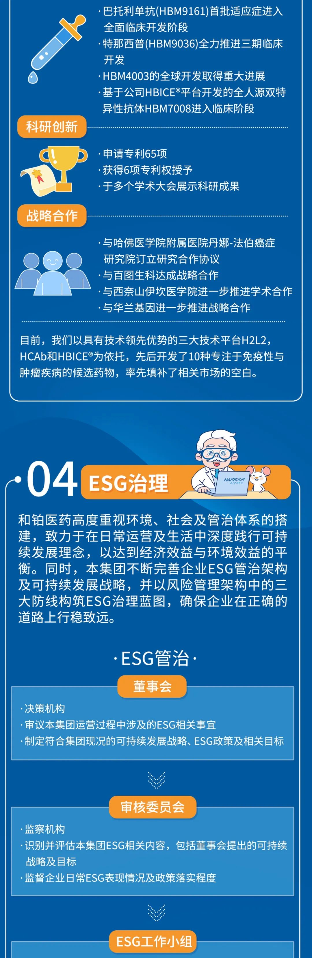 和铂自有的抗体技术平台Harbour Mice®可生成双重、双轻链(H2L2)和仅重链(HCAb)形式的全人源单克隆抗体。基于HCAb抗体平台开发的免疫细胞衔接器(HBICE®)能够实现传统药物联合疗法无法达到的抗肿瘤疗效。Harbour Mice®与单克隆B细胞筛选平台共同组成了和铂的下一代创新治疗性抗体研发引擎。