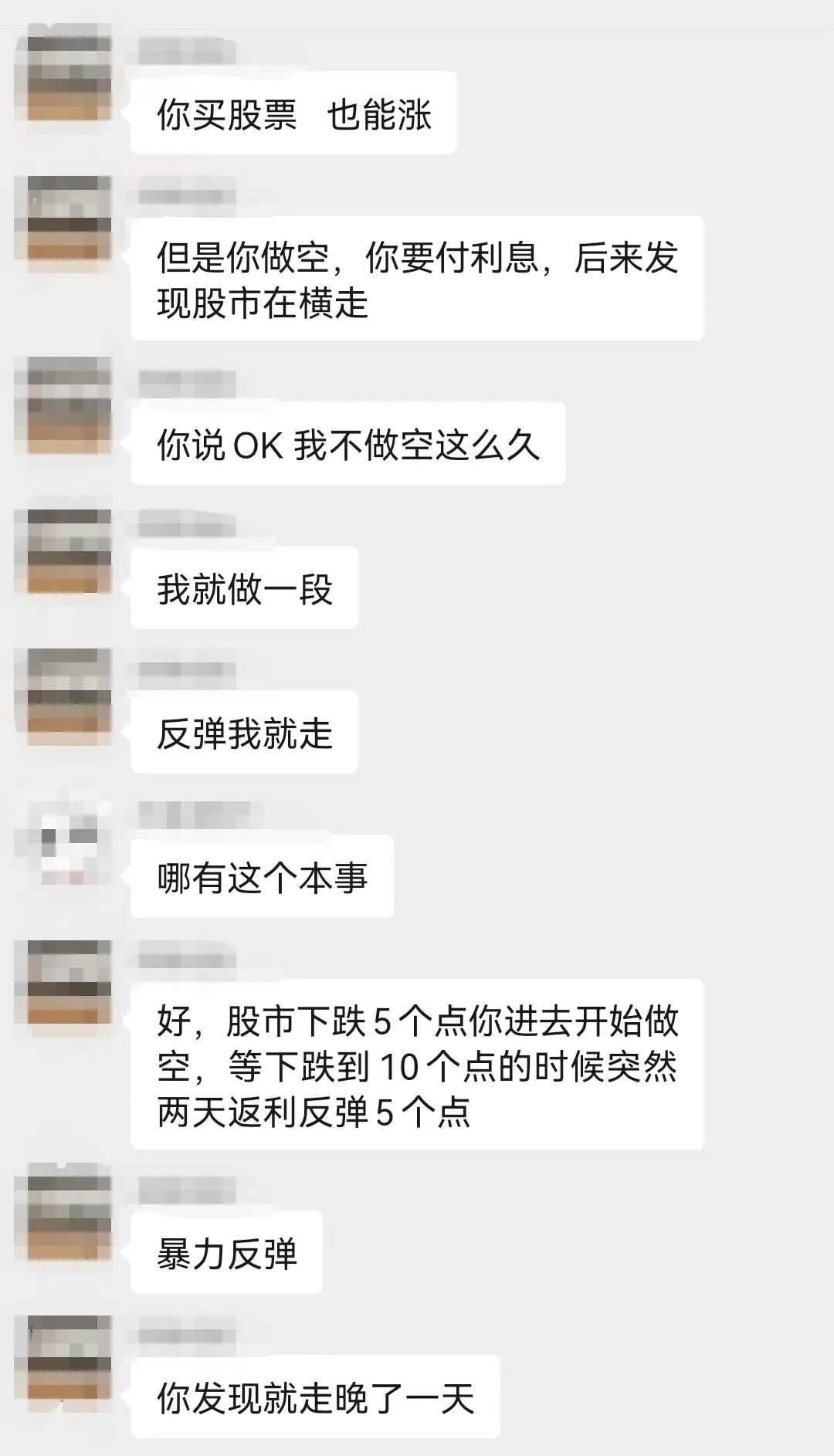 前两天在群里有小伙伴问,既然已经到熊市为啥不做空?我当时表达了自己的一点看法,小助理将聊天截图整理了出来,在此跟大家分享。