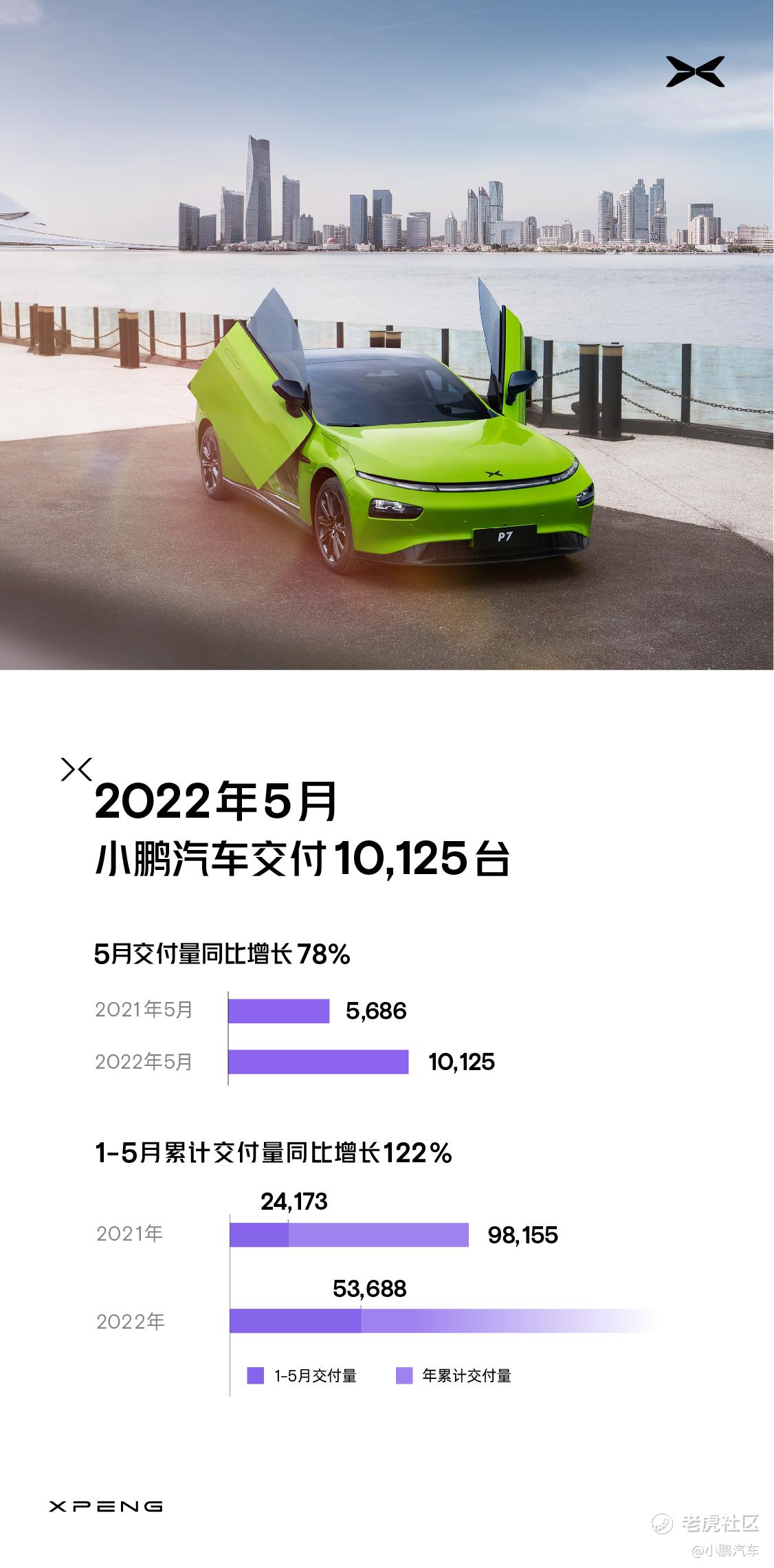 今日,我们公布了最新交付成绩。2022年5月交付10,125台,同比增长78%。