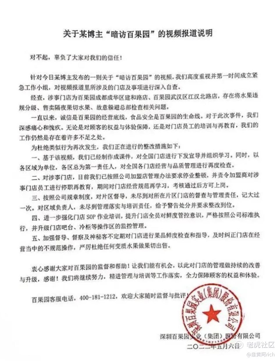 百果园方反应迅速,当天就发布了致歉声明,并宣布了整改措施。