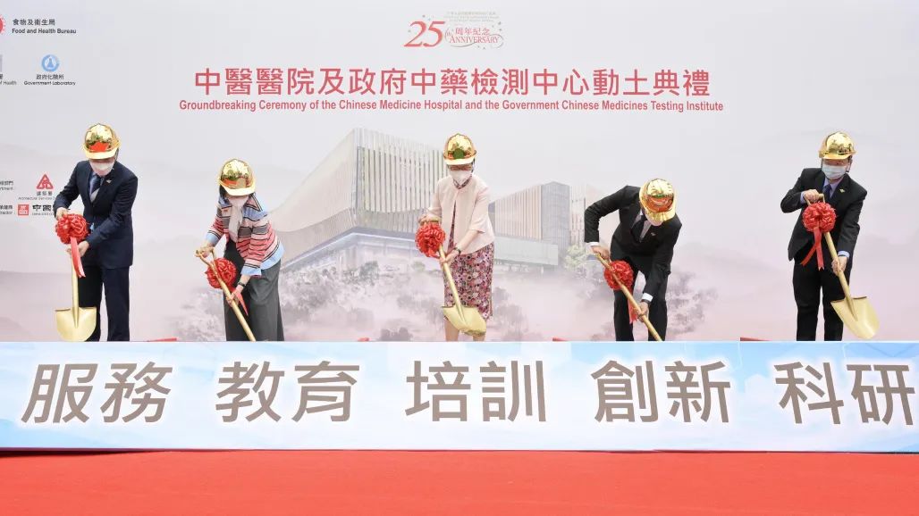 2022年6月2日,由中国建筑国际旗下中国建筑工程(香港)有限公司(以下简称“中建香港”或“公司”)设计建造的中医医院及政府中药检测中心项目举行动土典礼。香港特区行政长官林郑月娥,特区政府食卫局局长陈肇始,食卫局常任秘书长(卫生)陈松青,卫生署署长林文健,建筑署署长何永贤,中国建筑国际执行董事、副总裁孔祥兆等嘉宾共同主礼。中国建筑国际助理总裁黄江出席典礼。