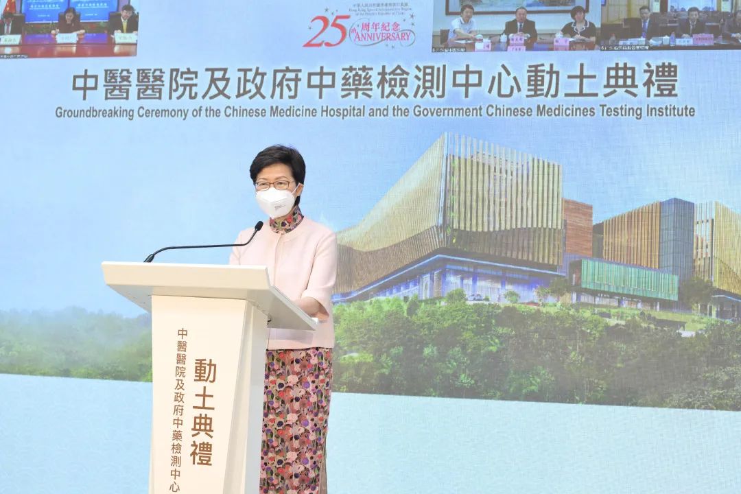 林郑月娥在典礼致辞中首先感谢国家对香港中医药发展的大力支持,感谢中央各部委在中医医院及政府中药检测中心项目筹建和香港中医药抗疫过程中的帮助支持。她表示,今天的动土典礼标志着香港中医药发展一个重要里程的开始,两个旗舰项目将成为促进香港中医药发展的强大动能。香港在“一国两制”独特优势和国家全力支持下,定将更好融入国家发展大局,与祖国共同为人类健康作出努力。