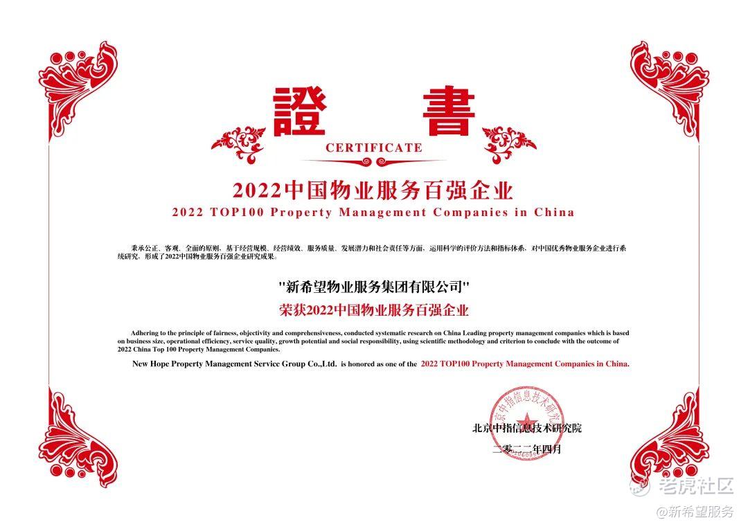 本次发布会上,新希望服务凭借以稳步向前的服务实力,荣膺“2022中国物业服务百强企业”奖项。