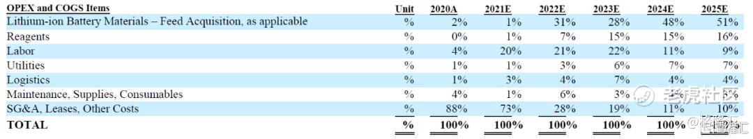 总进料14.4万吨的废电池等量,按照2020年的实际原材料成本1288490推算,进料共665吨等量,相当于每吨成本1937美元,2025年原料进货成本预测1937*14.4万吨=2.8亿美元。根据公司预计,原材料成本约占总成本及开支的一半(见下表,包括折旧和摊销等项目)