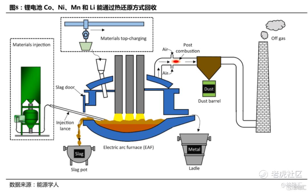 随着各国政府对环保要求的提高,预计火法炼金回收产能将逐步被替代,未来的电池材料回收将普及化学浸取法(浸取采矿法)为主流(作为对比,Redwood Materials使用火法结合浸取的方式提取有效原料)。