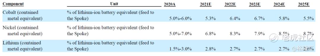 根据公司提供的生产数字,2020年的实际黑物质效率是54%,实际投料665吨废旧锂电池,产出360吨黑物质。2021年预计投入5500吨(2个尚未完成产能爬坡的5000吨幅工厂(分别在加拿大安大略和美国纽约州罗切斯特))锂电池,产出2940吨黑物质(约53%)。