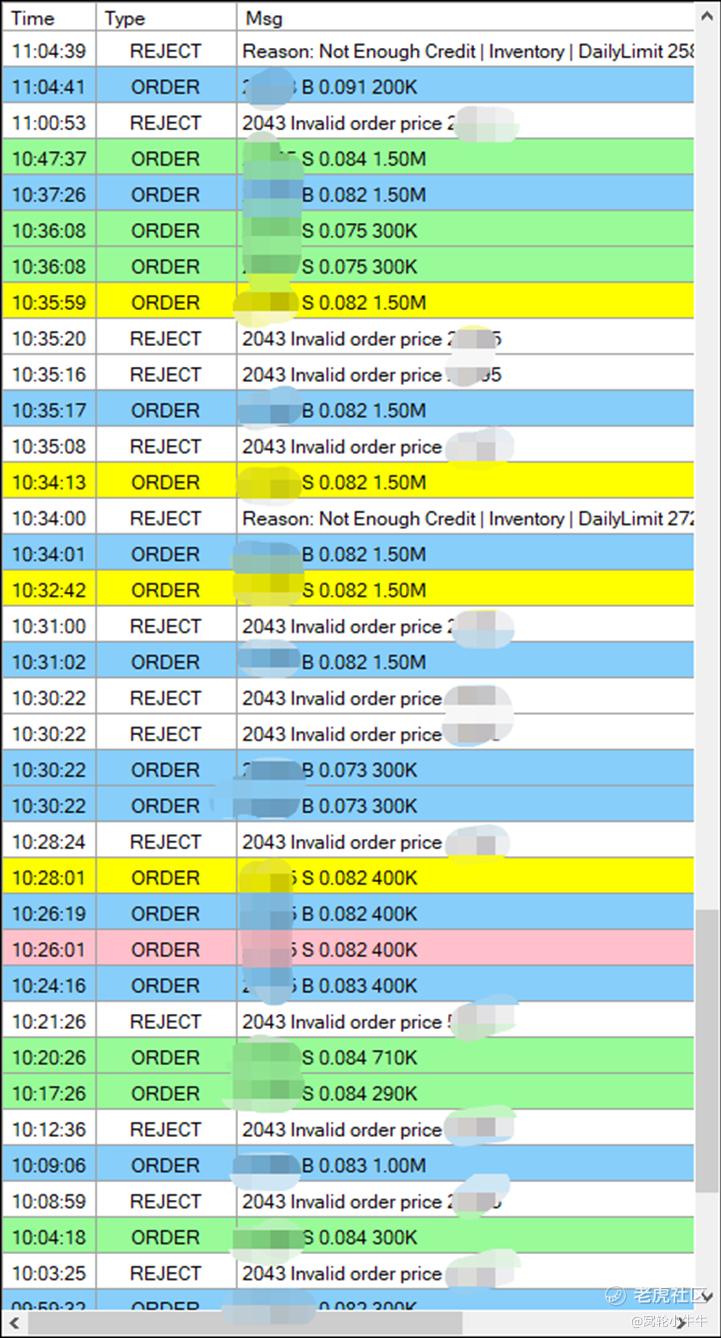 再看看逐笔成交,有个倒霉蛋在0.052买入了1M的货,成本为52000港元。咱们没看到他的卖出单子,买卖盘口也没有报价了,这笔钱扔水里了,没有一丝水花。