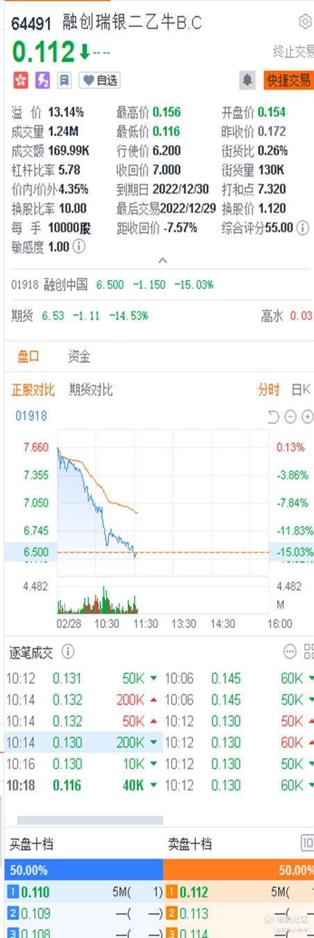如上图,这个牛证的回收价是7.00,早就跌穿回收价了。发行商还开价(盘中未截到开价席位,但确实是发行商开的价),而且开的价格不便宜。买进去妥妥的亏一百多格。下面这个温柔点,估计是刚刚触及回收价的,还没熄机而已。